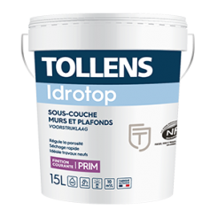 Idrotop Prim de Tollens est une peinture d’impression acrylique intérieure pour tous supports. Adaptée pour les pièces sèches et humides, elle est idéale pour le placoplâtre dont elle régule la porosité. Facile et rapide d’utilisation.