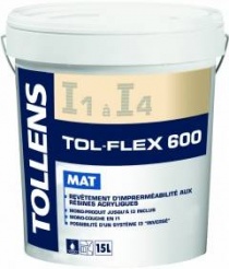 Tol-Flex 600 Mat de Tollens est un revêtement semi-épais, mat, à base de résines acryliques pures en phase aqueuse pour la finition des systèmes d’imperméabilité de façades, de classe I1 à I4.