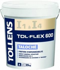 Tol-Flex 600 Taloché est un revêtement semi-épais, souple, d'aspect mat taloché pour les systèmes d'imperméabilité des façades en classe I1 à I4. Permet de dissimuler les pontages des fissures (I1 à I3) ou l’armature (I4).